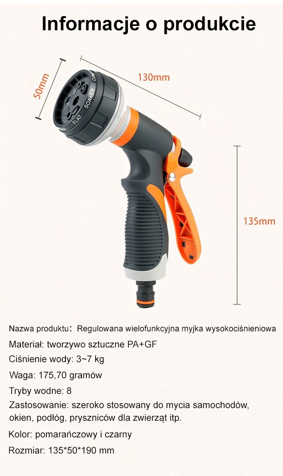 Wielofunkcyjny pistolet na wodę do myjni samochodowych